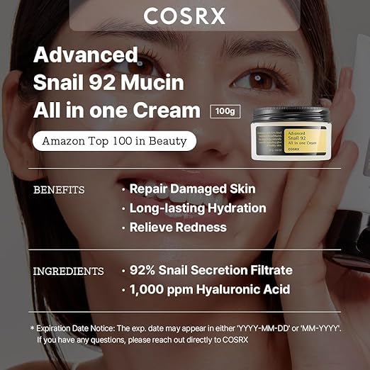 COSRX Snail Mucin 92% Repair Cream 100g Korean Moisturizer No Parabens Vegan