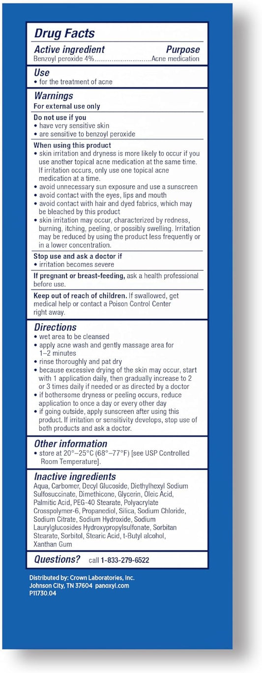 PanOxyl 10% Benzoyl Peroxide Acne Cleanser 5.5 oz 156 g Foaming Wash
